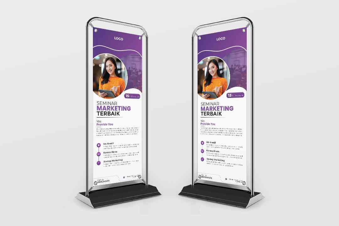 X Banner New Year Party berbentuk persegi panjang vertikal dengan karakter desain modern dan festive, menonjolkan warna dominan ungu dan magenta, dipadukan elemen teks besar berwarna putih dan hitam, serta grafis bintang putih di bagian atas. Desain visual utamanya menampilkan tulisan “2025 NEW YEAR PARTY” dengan ajakan untuk datang ke acara, lengkap dengan tanggal, lokasi, serta highlight hiburan berupa DJ, pertunjukan band, dan kembang api. Produk cetak ini cocok digunakan di bidang event organizer, venue klub malam, atau restoran yang menarget pasar remaja hingga dewasa untuk promosi pesta tahun baru dalam suasana meriah dan energik.