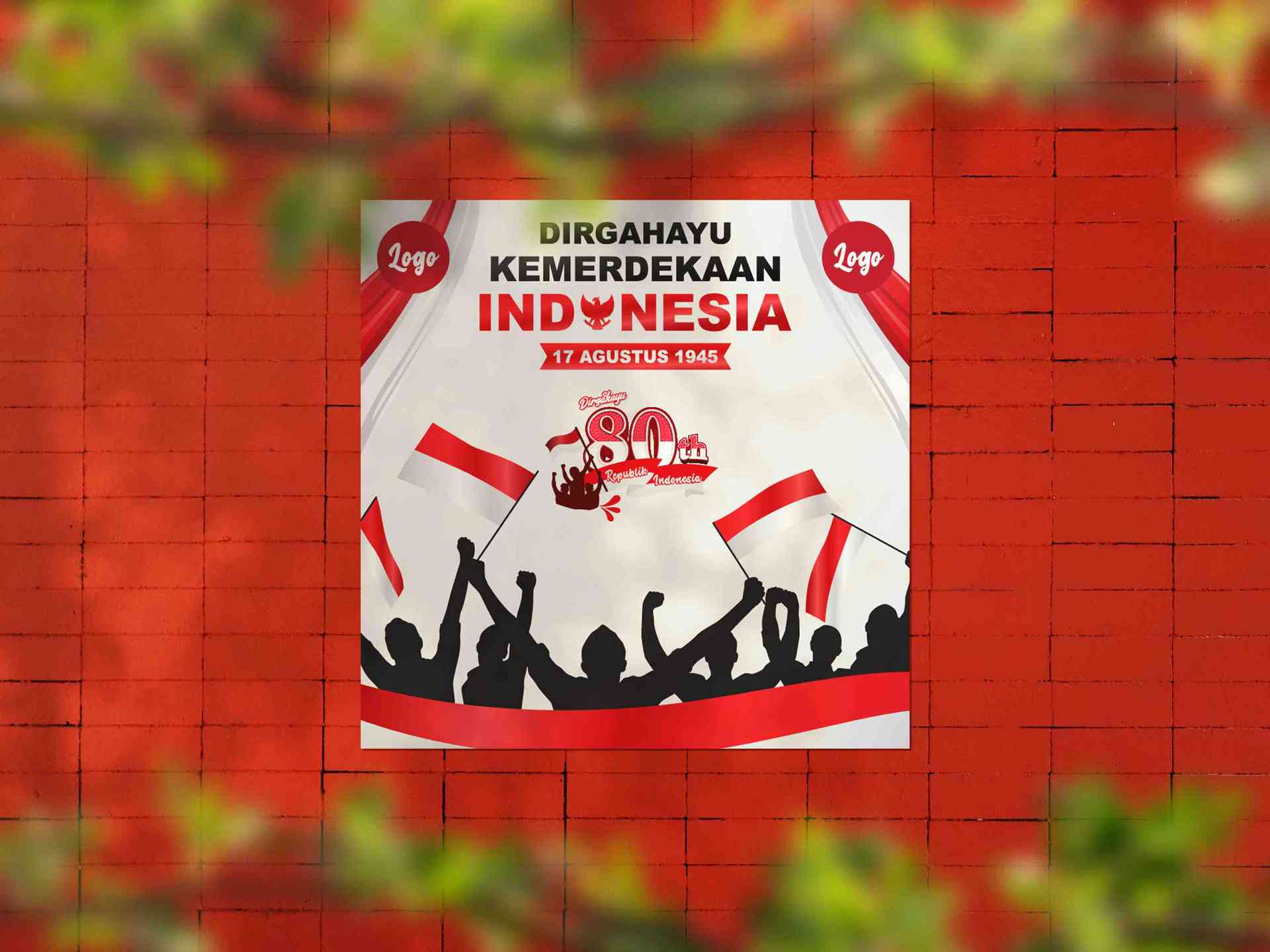 Baliho bertema peringatan 80 tahun kemerdekaan Indonesia ini menampilkan ilustrasi tangan mengepal dalam pose simbol semangat, didominasi warna merah...