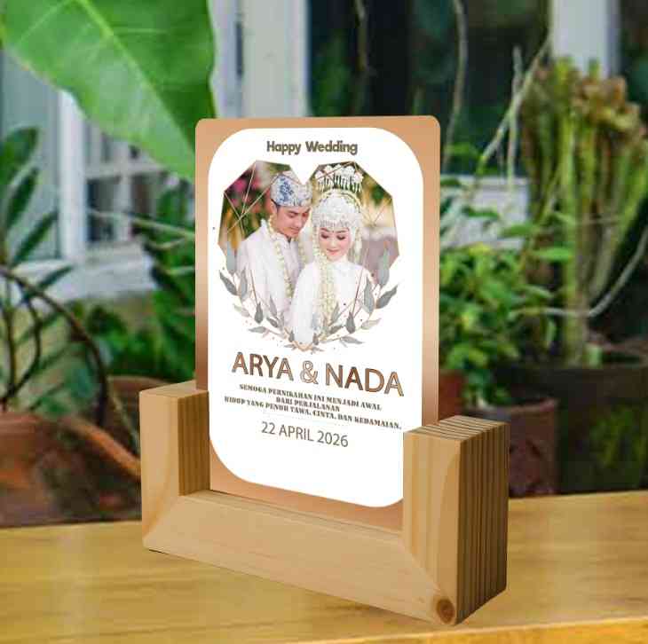 Dream LED ini menampilkan foto pengantin Arya & Nada dengan desain bernuansa coklat muda yang hangat dan elegan. Bagian atas terdapat tulisan “Hap...