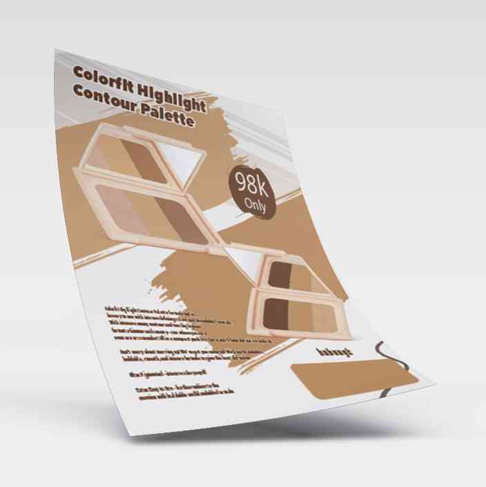 Flyer ini mempromosikan Colorfit Highlight Contour Palette dengan desain nuansa nude dan beige yang elegan. Menonjolkan dua palet dengan kombinasi war...