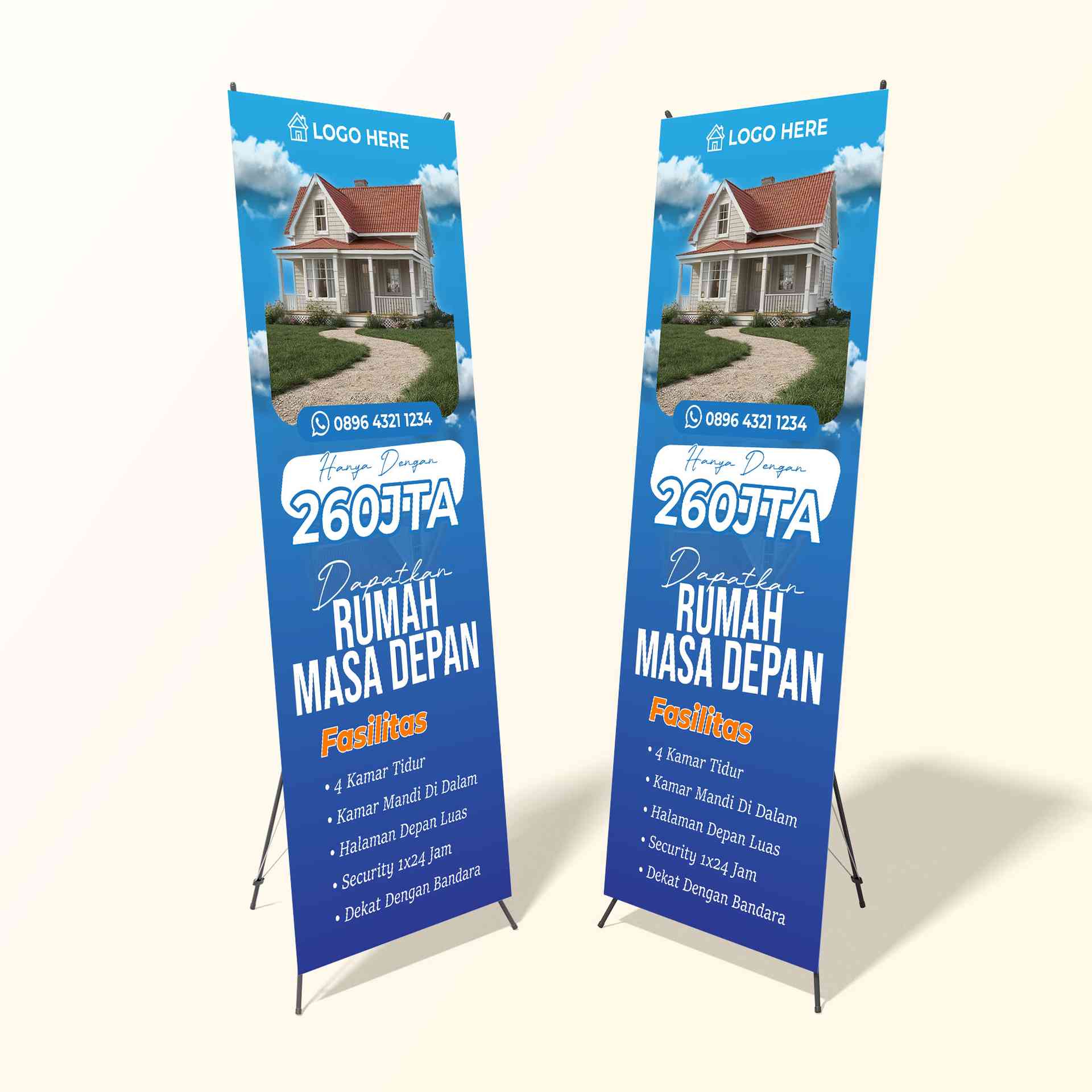Banner ini menampilkan rumah dengan harga 260 juta, mengajak pembeli untuk mendapatkan "Rumah Masa Depan". Dengan desain yang cerah, fasilitas rumah s...