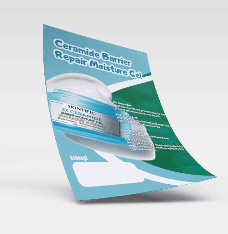 Flyer ini menampilkan Skintific 5X Ceramide Barrier Moisture Gel, pelembap wajah dengan kandungan 5 jenis ceramide, hyaluronic acid, dan centella asia...