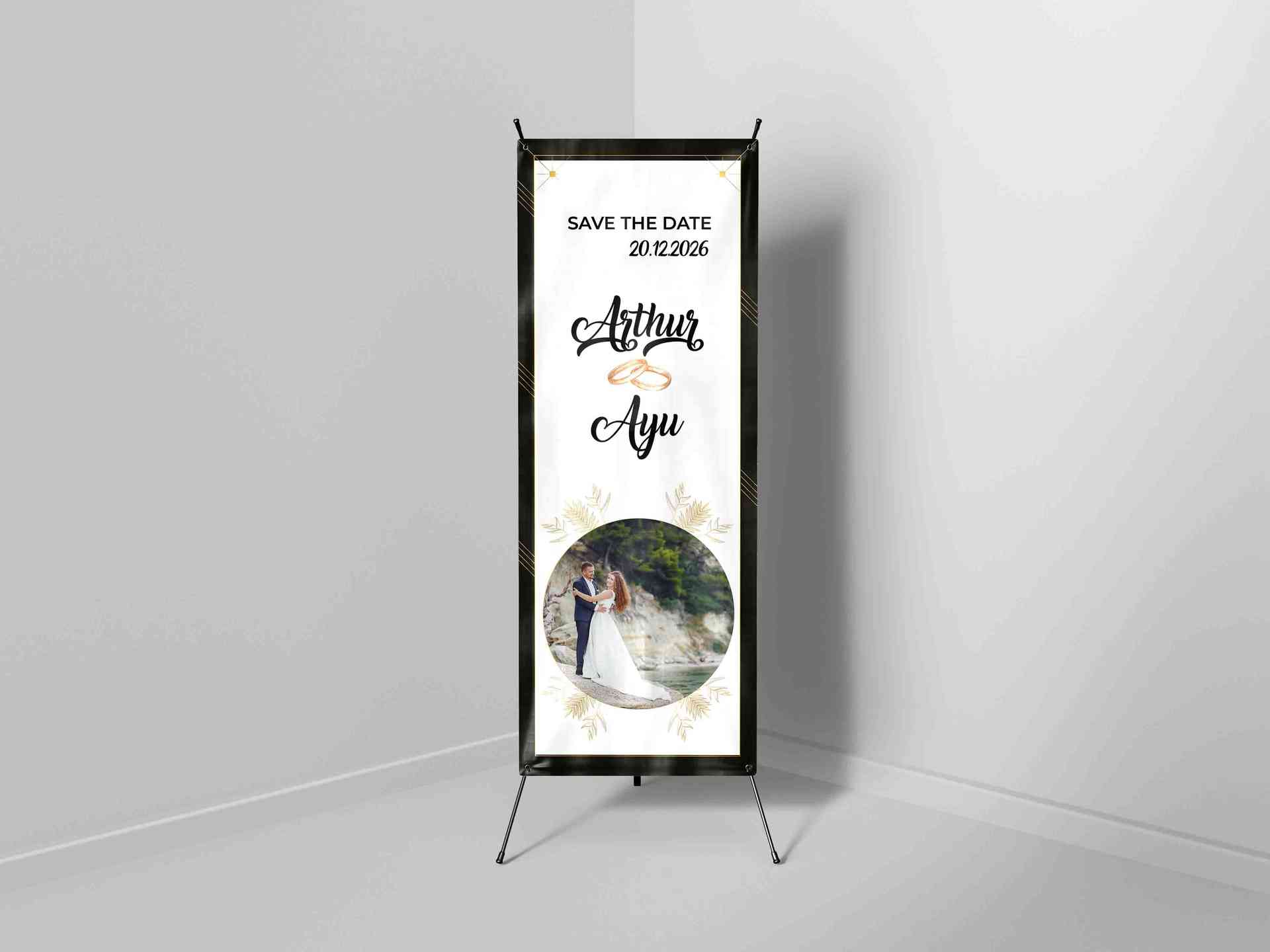 X-Banner ini didesain dengan nuansa minimalis yang elegan untuk pengumuman “Save The Date” acara pernikahan. Nama pasangan “Arthur & Ayu” ditampil...